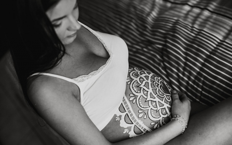 In questo caso ammetto di aver avuto qualche aiutino... La mamma Valentina è super fotogenica e la bravissima Make up artist di Vicenza Martina Altissimo (con la quale ho spesso collaborato in vari Matrimoni) ha realizzato un incredibile mandala dipinto sul bel pancino della futura mamma.
