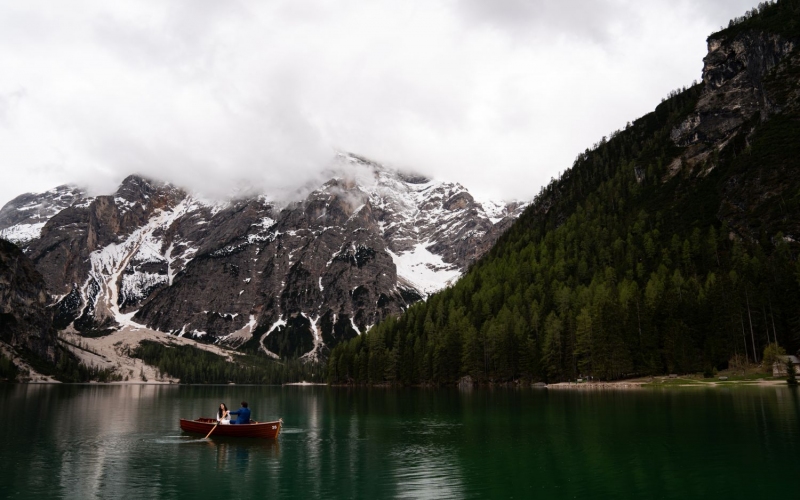 Hanno scelto una location che tutto il mondo ci invidia: il lago di Braies. Una gemma verde acqua tra le Dolomiti.